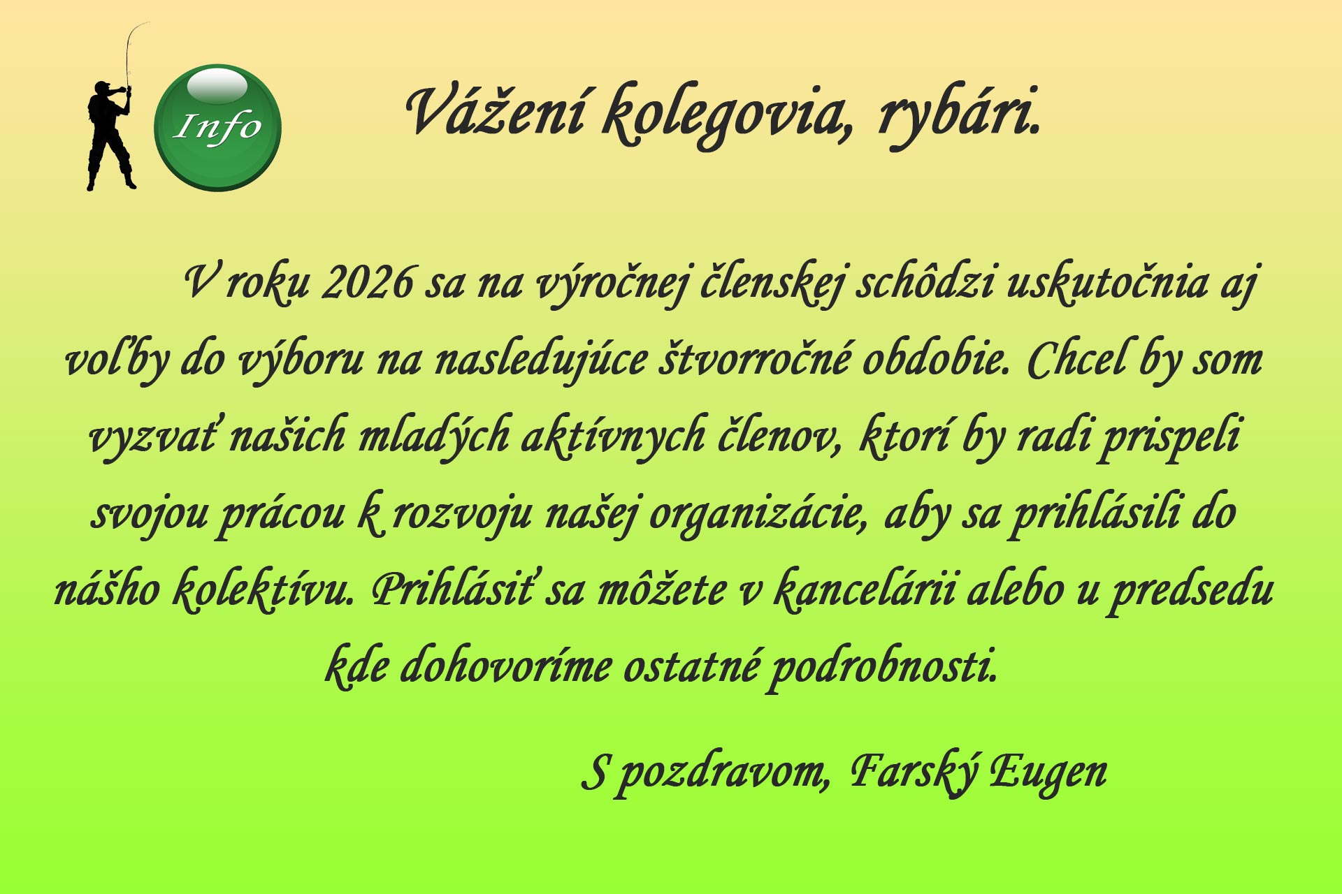 Vítame Vás na našich stránkach, ktorými by sme chceli informovať o dianí v našom rybárskom regióne nielen našich členov. Na našich stránkach nájdete aktuálne novinky a aktivity nášho združenia, informácie o športovom rybárstve a o výkone rybárskeho práva, ako aj o krásach nášho okolia, starostlivosti o ekológiu a ochranu vôd a okolitej prírody.Prispejte aj vy k rozvoju týchto stránok, napíšte nám Vaše postrehy, čo sa Vám páči - nepáči, a čo by ste privítali.