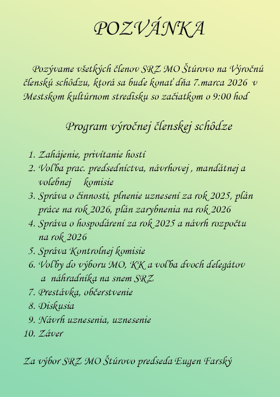 Stránky miestnej organizácie Slovenského rybárského zväzu v Štúrove